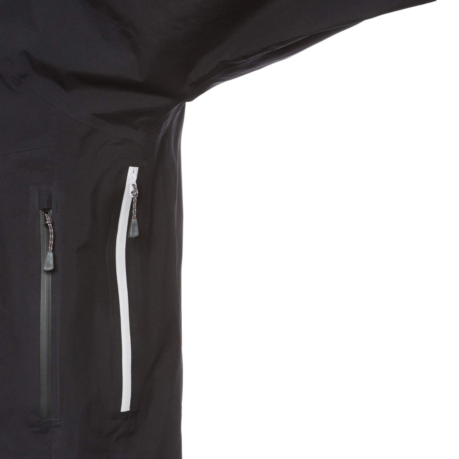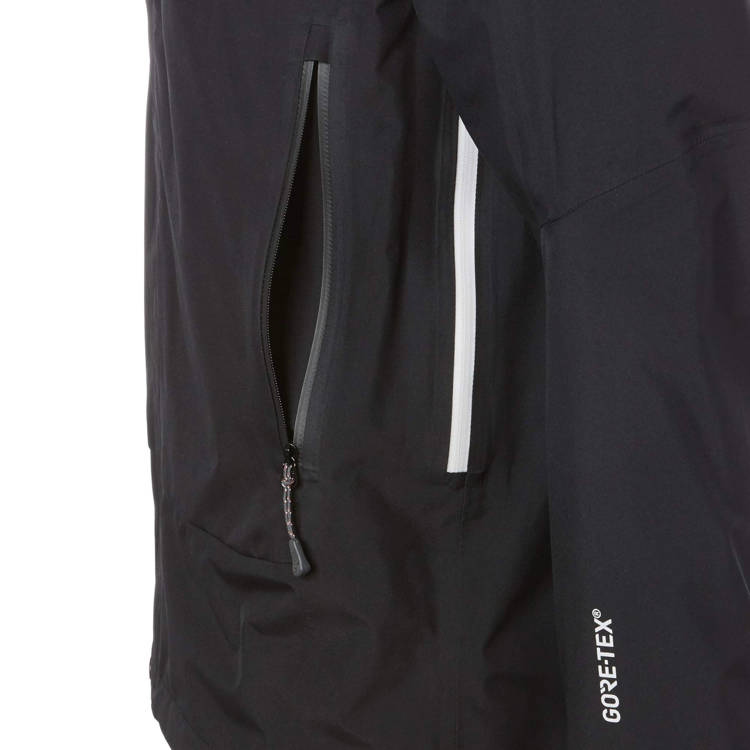 Die Regenjacke ist aus wind- und wasserdichtem Gore-Tex Paclite hergestellt, das dich auch bei stürmischem Dauerregen angenehm trocken hält. Zusätzlich lässt eine PFC-freie DWR-Imprägnierung Regentropfen einfach von der Jacke abperlen. Zudem trägt sich die Jacke äußerst bequem, denn ihr Außenmaterial hat einen besonders weichen Griff. Das Material ist stark atmungsaktiv, sodass du auch bei hoher körperlicher Belastung immer ein angenehm trockenes Klima in der Jacke hast. Wird dir trotzdem mal zu warm, kannst du einfach die Unterarmbelüftung zum schnellen „Abdampfen“ öffnen. Die Belüftungsreißverschlüsse sind nicht im Achselbereich angebracht, wo häufig als störend empfunden werden, sondern etwas tiefer an den Flanken.