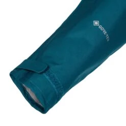Die erhöht angebrachten Einschubtaschen lassen sich auch in Kombination mit einem Becken- oder Klettergurt problemlos erreichen. Wenn dir beim steilen Aufstieg mal zu warm wird, kannst du einfach die Belüftungsreißverschlüsse unter den Armen zum schnellen „Abdampfen“ öffnen. Die Reißverschlüsse sitzen nicht direkt unter den Armen, sondern sind etwas tiefer an den Flanken angebracht, wo sie häufig als weniger störend empfunden werden. Die voll verstellbare, helmtaugliche Kapuze sorgt mit ihrem besonders breiten, stabilen Schirm dafür, dass nicht nur dein Kopf, sondern auch dein Gesicht so gut wie möglich vor Regen geschützt bleibt.